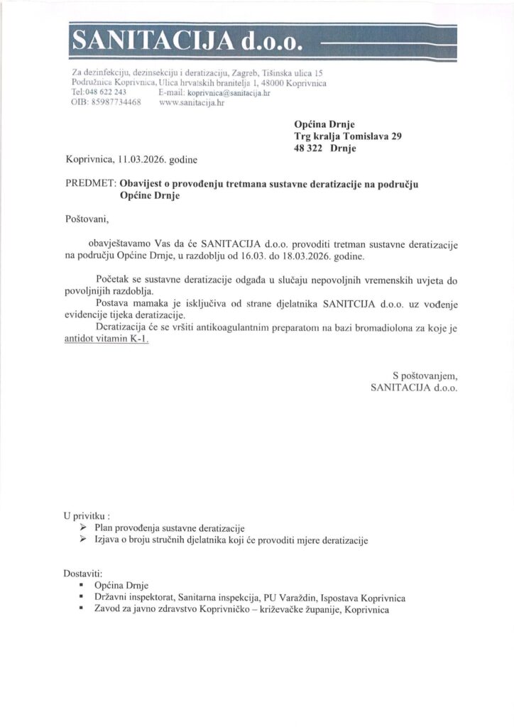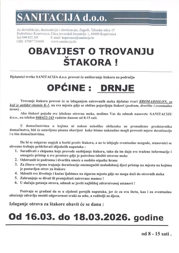 E-mail za kontakt (primarni): opcinadrnje@gmail.com